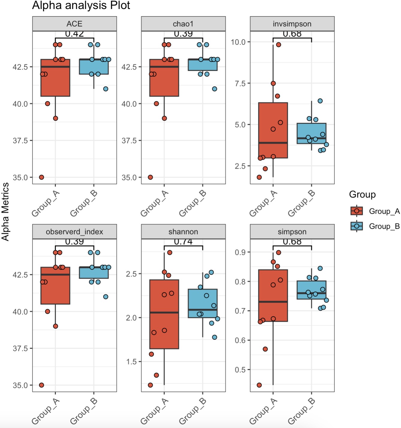 计算核心属的alpha多样性并绘制成箱型图
